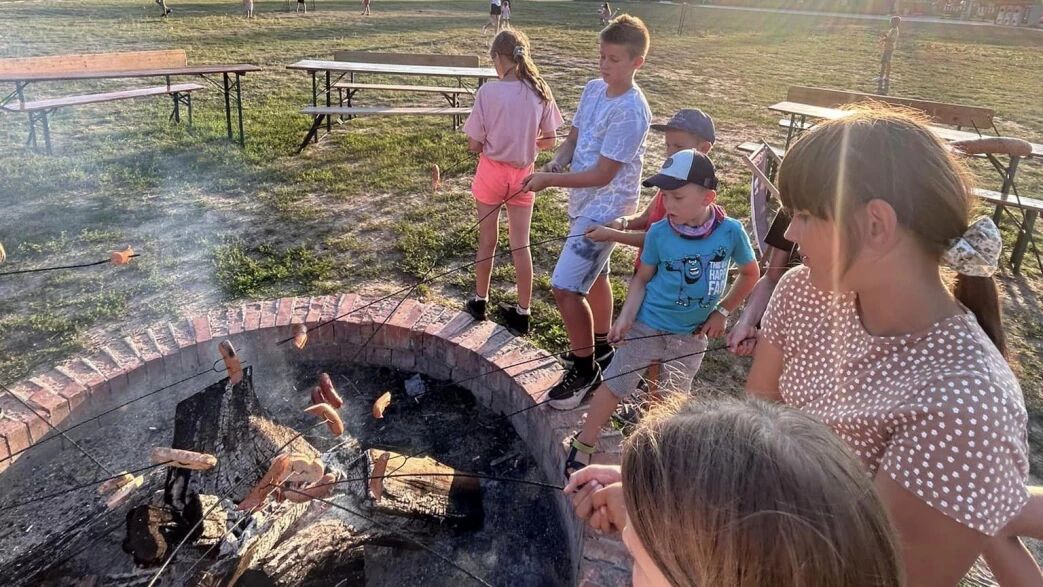 ognisko/grill z pieczeniem kiełbasek